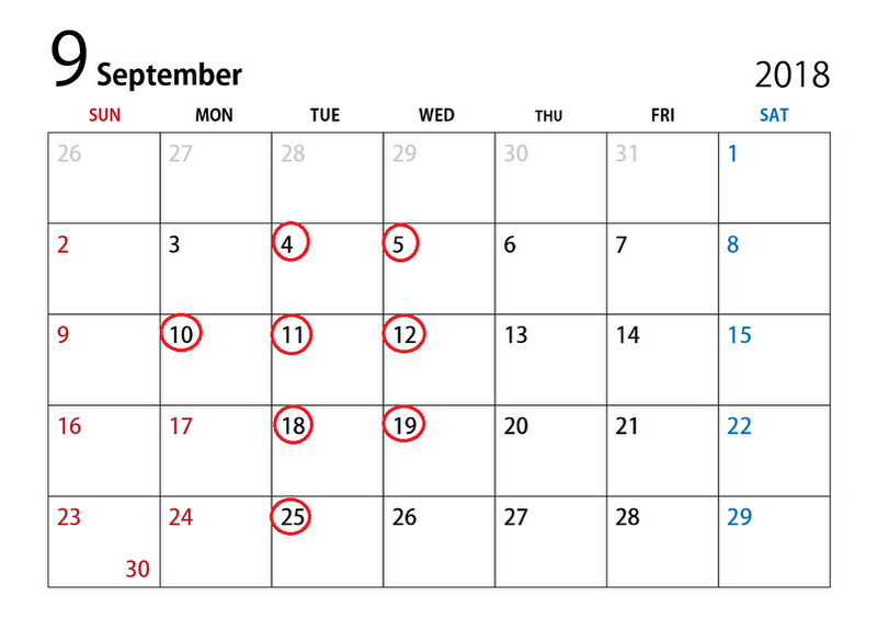 9月定休日は