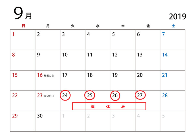 今年は 9月24日、25日、26日、27日 に、遅めの夏休みをいただきたいと思います。